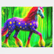 This fleece blanket has an artsy unicorn pictured on it.