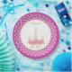 Unicorn, flowers, gold confetti on white & violet crown chakra mandala background Paper Plate. Princess text can be personalized. The crown chakra is for higher consciousness or empathy with all beings. Good for kids and for adults!