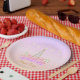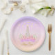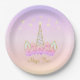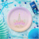 Unicorn flowers and stars magic time Paper Plates. Magic time text can be customized.