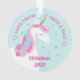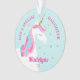 Ce ornement personnalisé de licorne fille présente un design de licorne lunatique mignon avec des fleurs et des étoiles de parties scintillant en faux or. Personnalisez le texte à l'avant et à l'arrière.