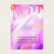 This girly and glamourous multiple earring display card (edit the "earring hole" line to change the number of holes) is the perfect way to stylize your packaging and add your own personal flair and personality. It features faux printed sparkly unicorn rainbow colour thick glitter drips on top of a holographic iridescent background. The typography is an elegant cursive script with a modern serif font to match. The colour scheme includes a bright and vibrant neon pink, peach, blue, purple, yellow, and coral. It's chic, pretty, unique, and luxurious; the perfect way to advertise your business and stylize your marketing and advertisement material for your customers. (earring holes are printed markers only, puncturing must be completed by the customer)