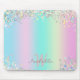 Unicorn Holographic Glitter mouse pad - A trendy sparkling coloured mouse pad with mixed turquoise, pink and mauve and light yellow glitter. You can personalize this mouse pad by adding your name and initials.