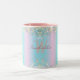 Unicorn Holographic Glitter mug - A trendy sparkling coloured mug with mixed turquoise, pink and mauve and light yellow glitter. You can personalize this mug by adding your name and initials.