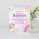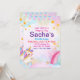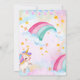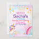 A magical unicorn stands in the centre, its mane flowing with soft pastel shades of pink, purple, blue, and gold accents that shimmer. The unicorn is surrounded by sparkling stars, fluffy clouds, and a radiant rainbow arching over its head. Its horn is golden, spiralled with glittery details,