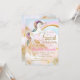 Invitations à la fête d'anniversaire de la licorne avec joli violet rose et bleu turquoise unicorne et arc-en-ciel sur un bel arrière - plan de nuage d'or. Cette belle invitation de fête d'anniversaire pastel arc-en-ciel magique unicorne est facilement customisée pour votre événement en ajoutant simplement vos détails d'événement dans le style de police de votre choix. Vous pouvez également modifier la couleur de l'arrière - plan. Il s'agit d'un dessin imprimé sans véritable parties scintillant.