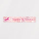 Name labels featuring a pink unicorn and your name on a light pink, soft-focused background with glistening light bokeh.