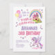 Celebrate your little girl's special day with this enchanting unicorn-themed 3rd birthday (or any birthday) party invitation! Featuring a cute purple and pink unicorn, festive balloons, and a majestic magic castle with a rainbow and stars, this invitation is perfect for a magical celebration. Your little one and her friends will be thrilled to join in the whimsical fun!