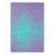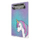 This design shows a cute unicorn with colourful hair and golden horn, standing on a shiny glitter background full of magic