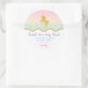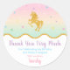 Unicorn magical birthday party favour sticker with glitter unicorn head, personalized with your child's name & thank you message.