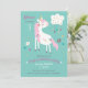 This sweet Birthday Party Invitation features a cute Unicorn character and other whimsical elements such as a cloud, flowers and stars. The festive design is ideal for a party with a Unicorn theme. This trendy card is perfect for a young and happy child.
