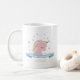 Start off your morning with this adorable and magical mug with a unicorn and saying 'Make magic happen every day' in a banner underneath. You can even customize this mug with your name.