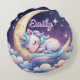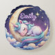 Add a touch of magic to your home with this round sleeping unicorn on a crescent moon pillow. Dreamy night sky, twinkling stars, and a custom name make it a unique and cozy gift for birthdays, baby showers, or nursery decor. Perfect for unicorn fans of all ages.