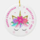 Unicorn Pink Flowers Glitter Personalized Name Ceramic Ornament