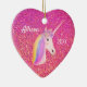 Unicorn Pink Gold Glitter Sparkles Heart Custom Ceramic Ornament