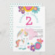 Unicorn Pink Teal Girl Virtual 2nd Birthday Party Invitation