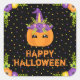 Unicorn Pumpkin Happy Halloween Black Square Stick Sticker