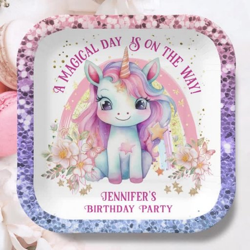 Unicorn 1st Birthday Girl Pink Rainbow GlitterDesigned by H-Art Studio Design