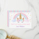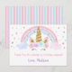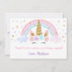 This adorable design features a unicorn face with a pastel coloured rainbow and faux gold glitter embellishments.