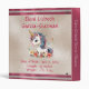 Keep memories of your child's first year of adventures in this lovely album-binder. The binder features lovely unicorn on a faux pearl foil background bordered with rose colored ribbon. (Ribbon is simulated in the artwork). Use as a photo album or binder for scrapbooking. Change the text to personalize with your child's name etc. Placeholders for text are on the front, back and spine. To change details, click «Personalize». To move the text or change the text size, font, or color click «Click to customize further».