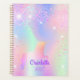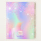 Un arrière - plan holographique branché aux couleurs pastel unicorne et arc-en-ciel rose, violet, vert menthe. Décoré avec des étincelles. Personnalisez et ajoutez un nom, écrit avec un script de style à la main girly moderne. Ajouter un an (n'importe quelle année). Lettres violettes.