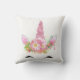 Unicorn Smiling Lashes Black Rose Gold Flowers Throw Pillow
