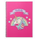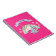 This cute and colourful custom notebook features a beautiful illustration of a unicorn and pastel coloured rainbow, over a hot pink background. Little stars in matching colours surround the rainbow. A banner is printed above the unicorn with a sample name printed below in an elegant purple script font. You can personalize the notebook to include your own custom name or text.