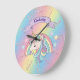Unicorn & Sparkly Rainbow Gold Glitter Custom Name Large Clock