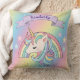 Unicorn & Sparkly Rainbow Gold Glitter Custom Name Throw Pillow