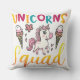 Charming Unicorn Squad Design: Featuring the playful "Unicorn Squad" text alongside a cute unicorn illustration, this pillow brings a fun and magical vibe to any room.