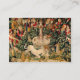This unicorn tapestry is an enhanced reproduction of the "The Unicorn is Found" tapestry, which is the second tapestry of a series of seven medieval tapestries that showcases the mythical unicorn.The series is entitled "The Hunt of the Unicorn" which are also referred to as the Unicorn Tapestries". The tapestries were created from 1495-1505. This Unicorn is Found tapestry shows a group of medieval noblemen and hunters, as well as all kinds of ferocious lions and leopards. There is a unicorn at the front, a beautiful white unicorn, which has its horn pointed downward as it kneels. There is a medieval fountain between the unicorn and the huntsmen.