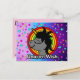 This colourful elegant postcard with a happy smiling unicorn is from the Amazon book Unicorn Wish by Rose Mayfair. A beautifully illustrated book about a little horse and her journey to become a unicorn. This post card captures that feeling of letting you wishes comes true in rainbow hues and liliac tones. The stars twinkle in delight in their baby pastel colours to make a truly pretty postcard to send. Enjoy!