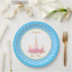 Cute unicorn with pink flowers and gold confetti on white and light blue crown chakra mandala Paper Plate. The crown chakra mandala is for higher consciousness and empathy with all beings. Princess text can be personalized.