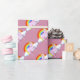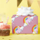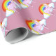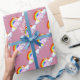 Pink Wrapping paper with Pink Unicorns on a white cloud with a multi colour rainbow. Colour of paper can be customized.