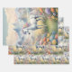 3 sheets of wrapping paper showing a dreamy image of a white unicorn with a rainbow mane standing in a field of flowers. In the background are majestic mountains. The perfect gift to give those who love magical and mystical unicorns. Contains generative content.