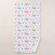 Jolie serviette de bain motif unicorne pour décorer une salle de bain pour enfants. Le design présente un visage de licorne blanc et des fleurs en violet, rose et turquoise.