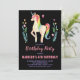 Unicorne rose noir Invitations d'anniversaire