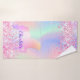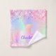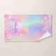 Un arrière - plan tendance aux couleurs arc-en-ciel aux couleurs pastel unicorne et arc-en-ciel rose, violet, vert menthe. Décoré de confettis et d'une licorne de couleur arc-en-ciel. Personnalisez et ajoutez un nom, écrit avec un script de style à la main moderne. Lettres violettes.