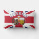 Coussin lombaire de l'UNION JACK patriotique arborant le drapeau du ROYAUME-UNI. Au milieu, il y a un dessin de trois bières avec CHEERS ! en texte courbe en haut. Idéal pour la décoration sur le thème de la bière et les fêtes, mais aussi pour les journées nationales de la bière, comme la fête de la bière en Grande-Bretagne. Une partie d'une plus large gamme de fournitures de fête dans la collection CHEERS & BEERS de Berean Designs.