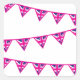 A graphic illustration of Union Jack Flag Buntings in pink, white and blue