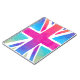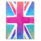 Cool looking watercolor design of the British flag / union jack. Bright and vivid watercolors include pink, purple, blue, turquoise and orange. The colours mix and blend together creating soft edges with a cloud like effect. Design has a unique look and an artistic flair.