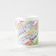 This mug is imprinted with a Bach Solos Suite for Cello. It was purchased as a thank you gift for a professional cellist friend who often performs this work. The cup is made of a high-grade ceramic and is fairly light. The walls are not too thick and it is a small to medium size. It's well finished, has a high-gloss glaze, and looks very elegant. The Bach Solo Suite score on the example I received was clear and had high contrast. Even though the staffs were small, the music was easy to read. The cellist who received this cup immediately knew what the music was as soon as she set eyes on it.