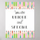 Decorate your classroom, office, nursery and more with this trendy "Unique and Special" poster with a bright and pretty pencil and brush art design.