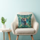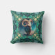 Unique Aries Zodiac Green Blue Peacock & Fractals Throw Pillow