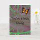 Featuring a bold artistic design with layered textures, vibrant green accents, and a delicate butterfly, this card blends modern style with a heartfelt message. It’s perfect for letting a friend know how much they mean to you—whether for a special occasion or just because.