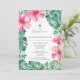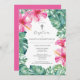 These unique baptism invitations feature a boarder of pink tropical flowers and monstera palm leaves. Use the template fields to add your custom details. Order printed cards online or printable invitations. An elegant choice for floral themes. To see more designs like this visit www.zazzle.com/dotellabelle