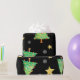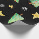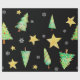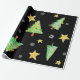 Very unusual and unique gift wrap for your very unique gifts! Christmas trees, snowflakes and stars dance on a black background. By Scarebaby Design.