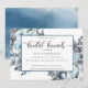 Unique bridal brunch invitation with exquisite foliage and flowers encasing details in a combination of dusty blue, navy blue, white, grey and sage tones. Bridal Brunch phrase in modern calligraphy. Card's back showcasing a delicate blue watercolor wash. Coordinating products available. Part of our "Rustic Blue Mountains" wedding and events collection.