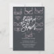 Lingerie shower invitation featuring light pink bras & panties with a chic hand lettered font set on a black chalkboard background. Flip our wedding shower invite over to view a matching back for an extra special touch.