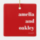 Make your winter wedding extra special with this unique custom ceramic ornament in red and white, doubling as a personalized place card for your guests. Featuring their name in elegant typography, it serves as a thoughtful escort card and a keepsake they can treasure. Perfect for a Christmas wedding, this festive design adds a charming touch to your table decor, blending holiday cheer with timeless elegance.