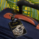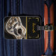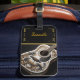 Elevate your style with this exclusive Luggage Tag featuring a stunning white and gold acoustic guitar illustration adorned with intricate eagle and bear details. This vibrant design, set against a bold black background, captures the artistry of music and nature, creating a unique accessory that makes a powerful statement.